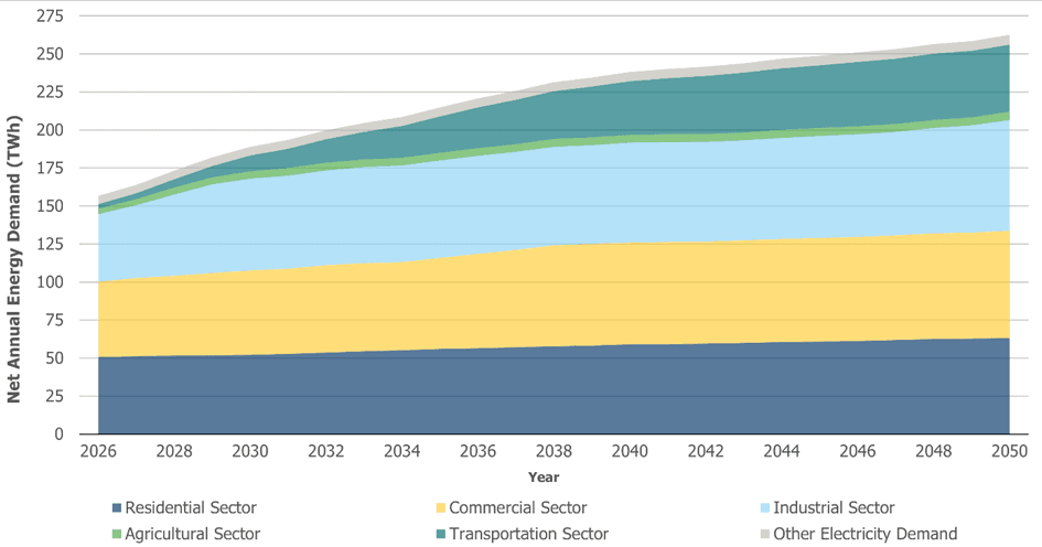 Driving this concern is a forecast by the IESO of a 75% growth in the demand for electricity by 2050 as shown in the graph below.